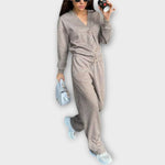 Suunniteltu naisille, jotka arvostavat sekä tyyliä että mukavuutta. Täydellinen rentoihin hetkiin kotona tai rennon eleganttiin ulkoiluun – tämä setti on välttämätön jokaiseen vuodenaikaan.