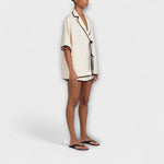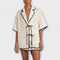 Koe eleganssin ja mukavuuden täydellinen yhdistelmä NOIR CREAM Hame-sarjallamme. Tämä upea setti sisältää lyhythihaisen paidan kauluksettomalla V-pääntiellä, joka tuo asuusi hienostunutta ilmettä.
