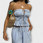 Istuvuus: Korkea vyötärö, olkaimeton: Korkealle leikattu, olkaimeton malli korostaa vartaloa ja antaa modernin ilmeen.