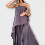 Vaivaton eleganssi odottaa sinua! Lisää kesävaatekaappiisi ripaus tyyliä upealla hihattomalla bandeau-topilla ja kevyesti laskeutuvalla maxi-hameella, jotka muodostavat täydellisen setin. Tässä tyylikkäässä kokonaisuudessa on moderni hihaton muotoilu ja epäsymmetrinen helma, jotka yhdistyvät upeasti hulmuavaan maxi-hameeseen – liike seuraa askeleitasi sulokkaasti.