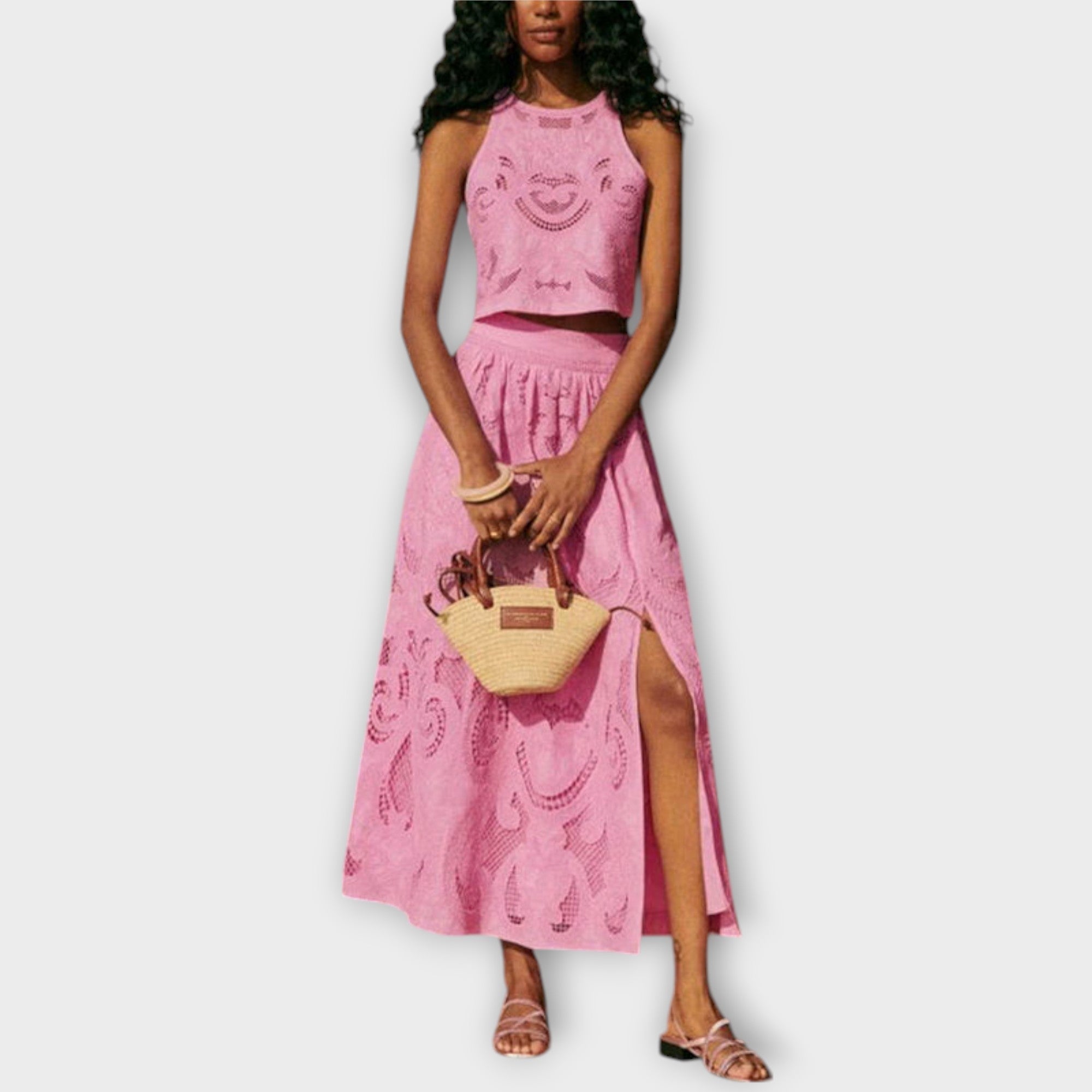 Danielle - Tyylikäs V-pääntiepaita ja hame