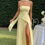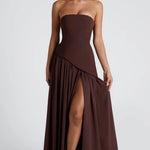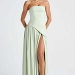 Kevyt helma sivuhalkiolla mahdollistaa vapauden liikkua ja lisää ripauksen rohkeutta, menettämättä kuitenkaan eleganssia.