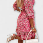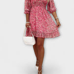 Koe kesä kukallisessa puff-hihamekossamme! Tämä mekko huokuu huoletonta kesänhenkeä vaivattoman kauneuden ja mukavuuden kautta. Kevyestä ja hengittävästä kankaasta valmistettuna se pitää sinut viileänä lämpimällä säällä ja lisää asuun leikkisän, flirttailevan vivahteen.