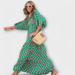 Tyyllikäs maksimekko – Täydellinen yhdistelmä mukavuutta ja eleganssia näyttävällä geometrisella kuosilla.