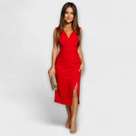 Vangitse katseet Desi-mekolla—täydellinen yhdistelmä rohkeaa eleganssia ja hienostunutta sensuellia tyyliä. Istuva siluetti korostaa luonnollisia muotojasi, kun taas syvä V-pääntie antaa näyttävän yksityiskohdan. Reiteen asti ulottuva korkea halkio tuo asuun ripauksen viettelevyyttä, tehden siitä ihanteellisen kaikenlaisiin tyylikkäisiin tilaisuuksiin.