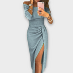 Välitä itsevarmuutta ja eleganssia Lena™ Elegant Off-Shoulder -mekolla – lumoava yhdistelmä hienostuneisuutta ja modernia viehätystä. Mekko on suunniteltu korostamaan vartaloasi täydellisesti, joten se on ihanteellinen valinta iltatilaisuuksiin, erityisiin juhliin tai silloin, kun haluat tehdä vaikutuksen.