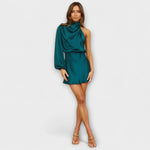 Hienovaraista eleganssia modernilla vivahteella—Mara-mekko tekee vaikutuksen asymmetrisella muotoilullaan ja pehmeällä laskoksellaan, joka syleilee vartaloa viehättävästi. Yksihihaisella pääntiellä ja harkitulla drapeerauksella se tarjoaa hienostuneen ja mukavan ilmeen erityistilaisuuksiin tai unohtumattomiin iltoihin.