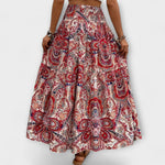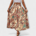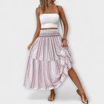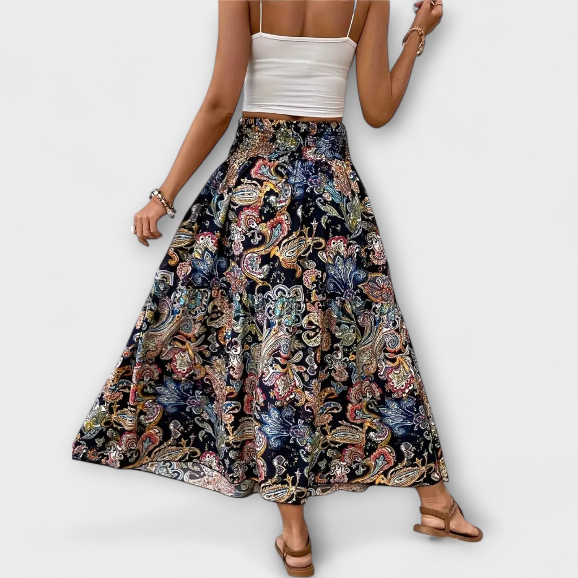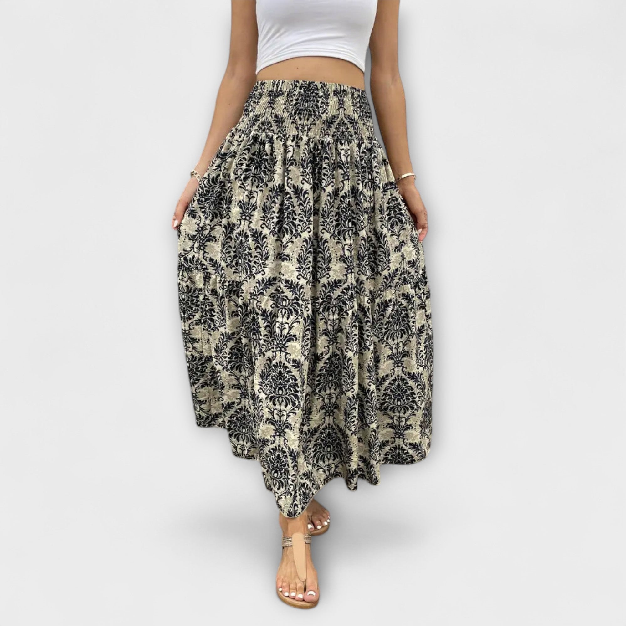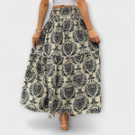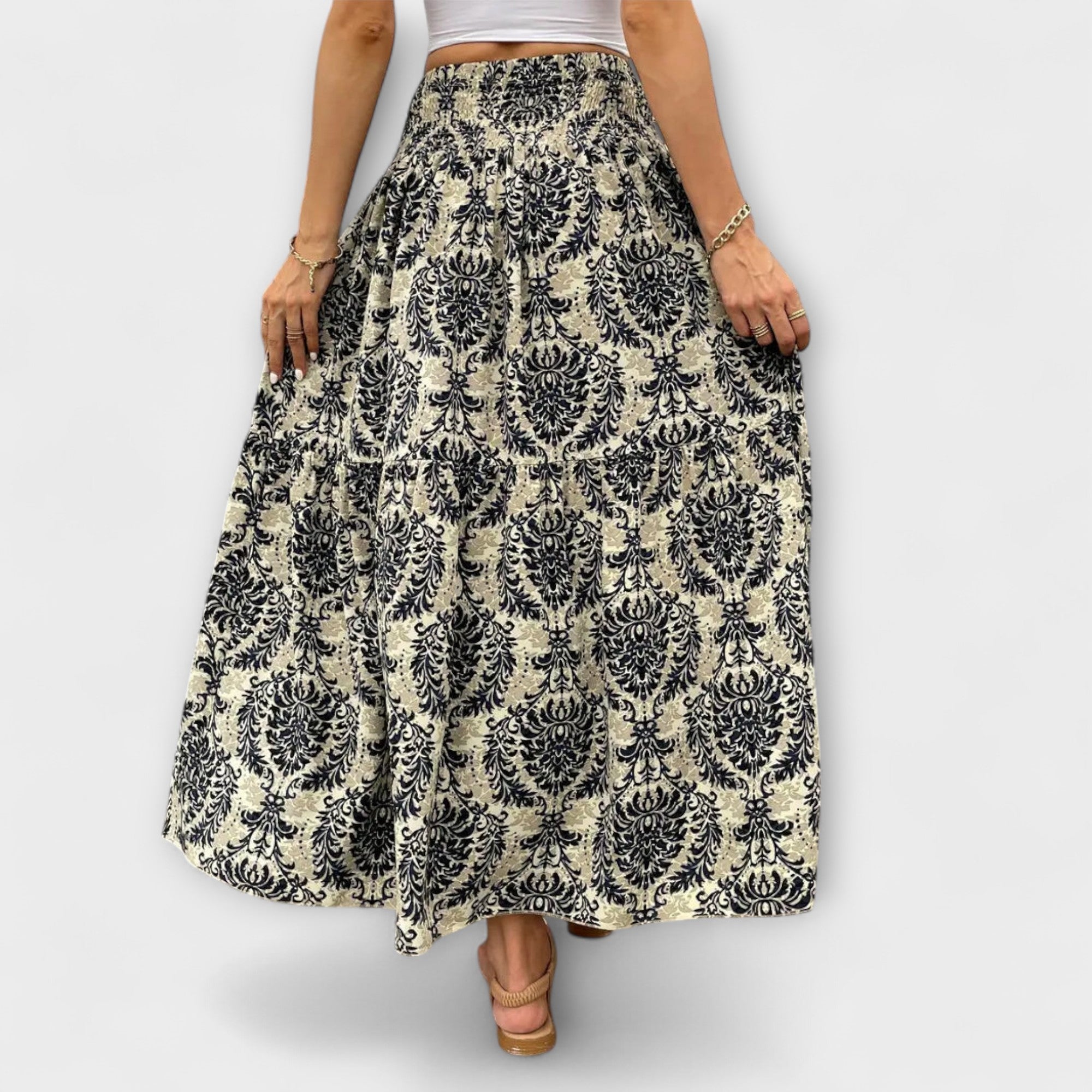 Koe puhdas liikkumisen vapaus tämän hameen kanssa, joka kertoo tarinoita. Uniikki kuviointi ja laskeutuva kangas tuovat asuusi erityistä viehkeyttä.
