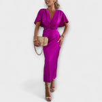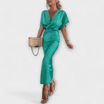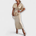 Sable - Kiinteä satiininimellinen V-pääntie ristiköysi kapeaistuva maximekko