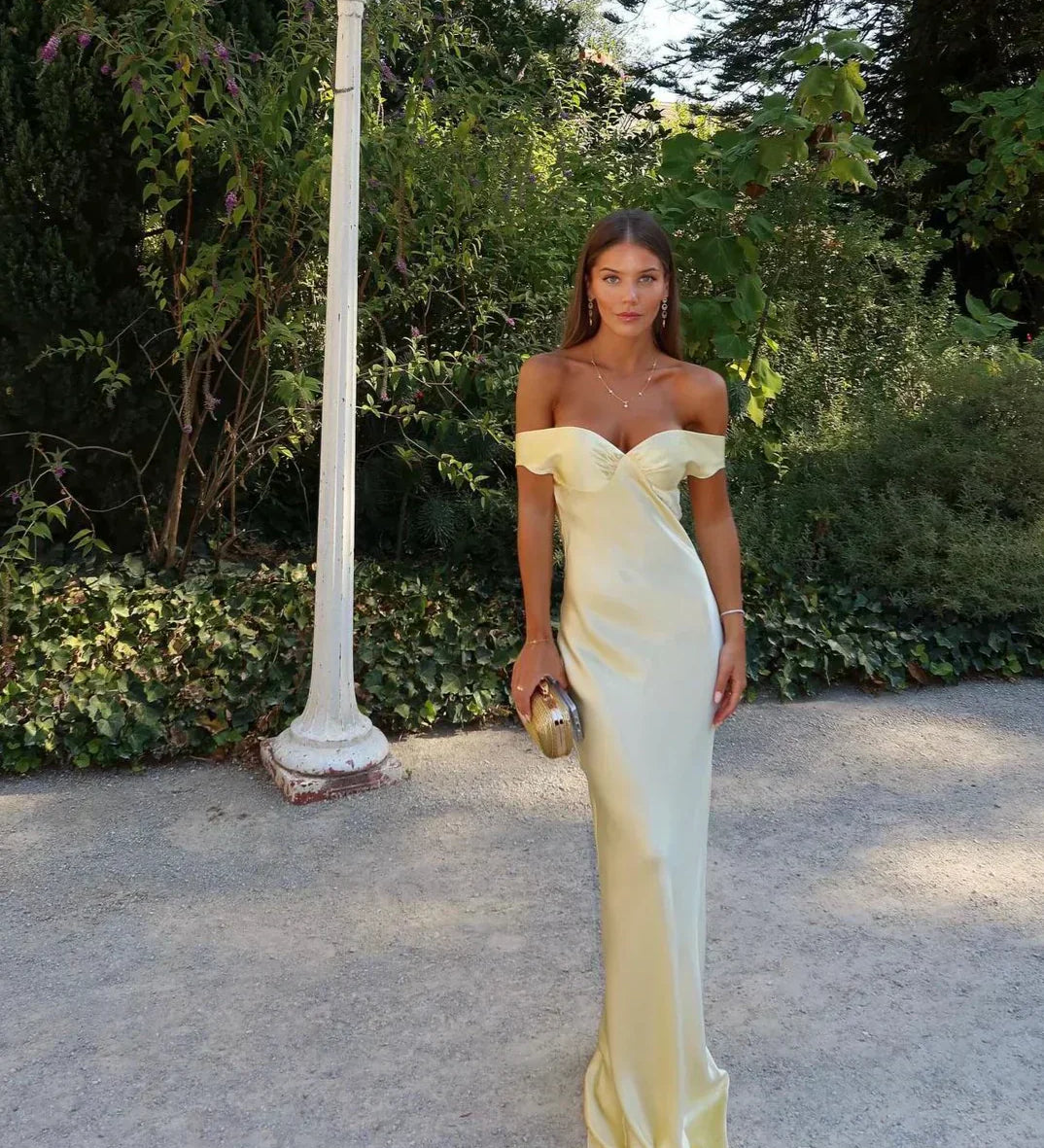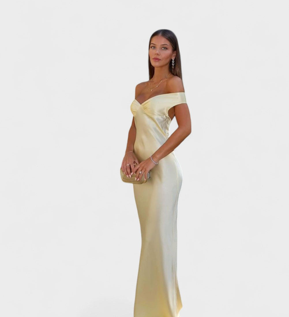 Bárbara | Pitkät satiiniset olkaimettomat mekot
