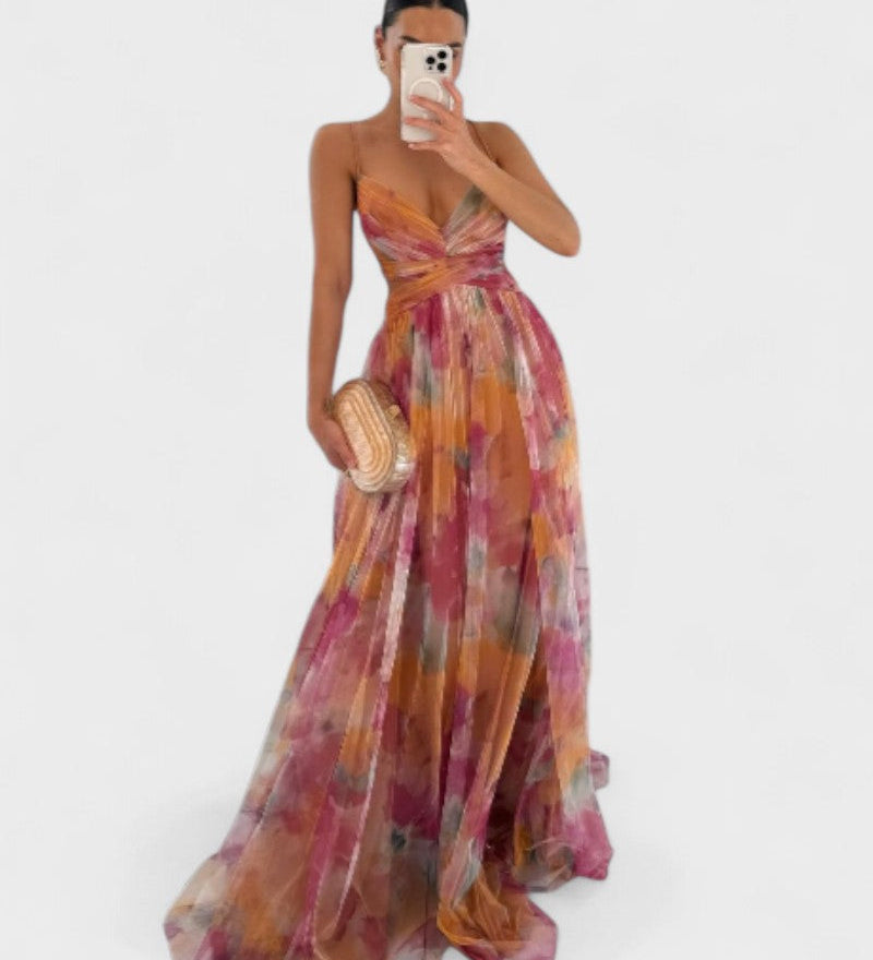 Isabela | Duga kukkivolainen ruffles-mekko