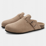 Minimalistiset, monipuoliset ja ripauksella vanhan ajan tyyliä henkivät Aubree-puukengät yhdistävät mukavuuden ja ajattoman eleganssin. Korkealaatuisesta mokkanahasta valmistetut puukengät tuntuvat pehmeiltä jalassa ja tukevat askellusta liukumattoman pohjan ansiosta. Unisex-muotoilu ja klassinen siluetti tekevät niistä välttämättömän vaatekappaleen kaikkina vuodenaikoina.