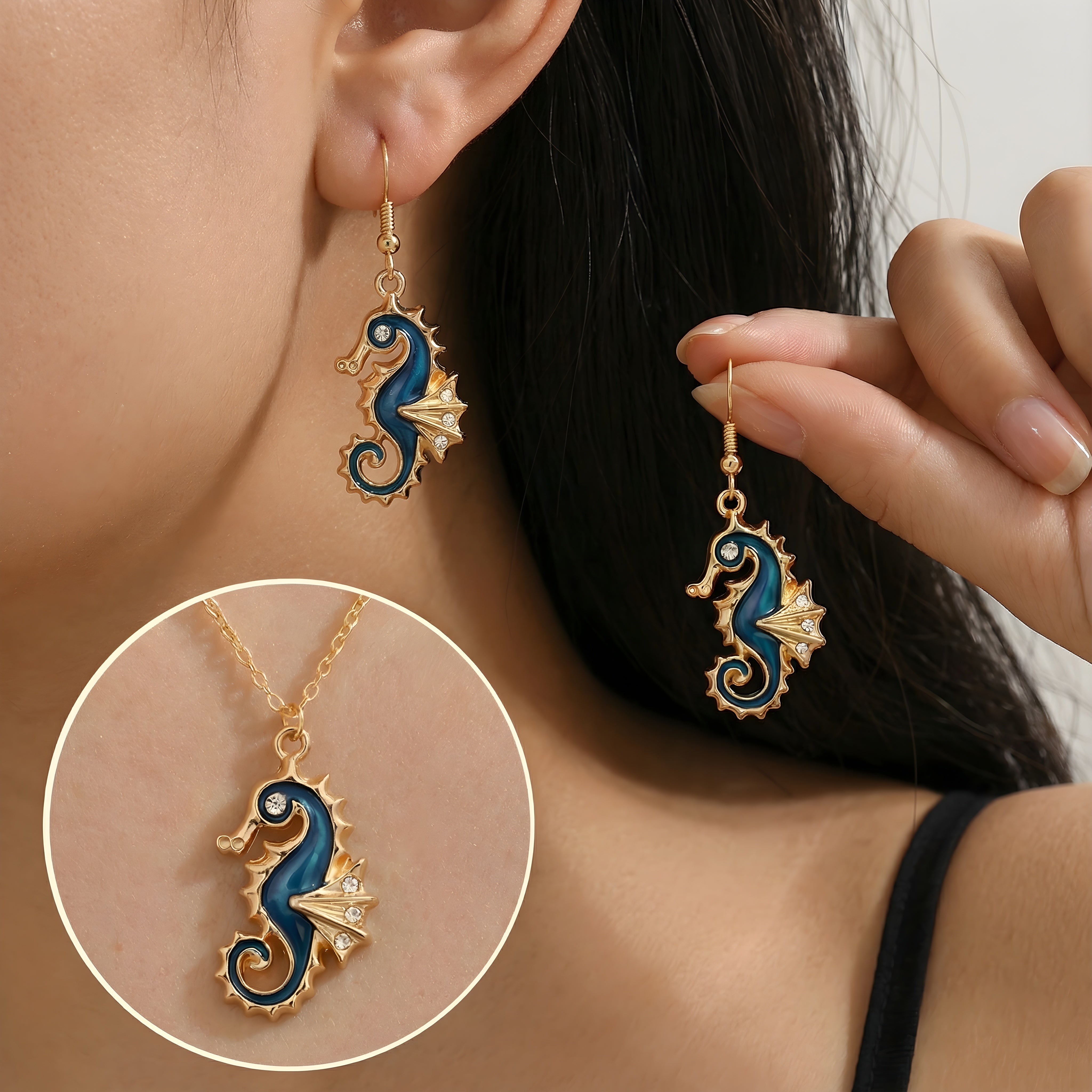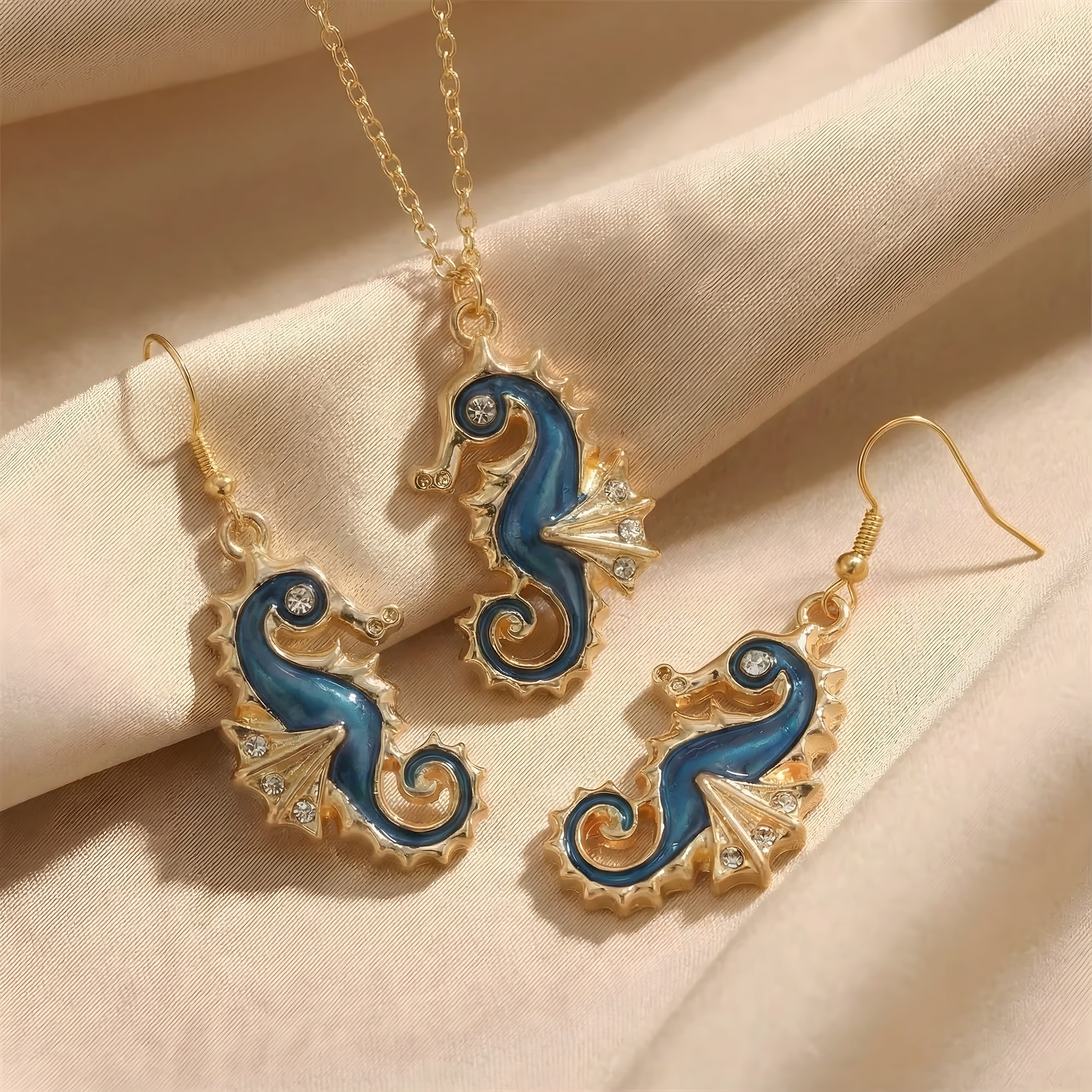 Merihevonen onnenamuleti - korvakorut, mukana ilmainen kaulakoru | Rajoitettu tarjous