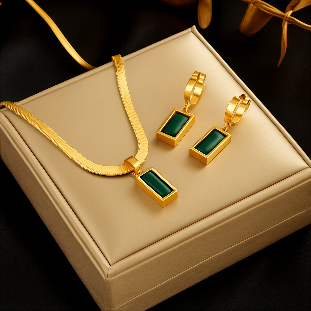 Smaragdikorvakorut onnea tuovat, mukana ilmainen kaulakoru | Rajoitettu tarjous