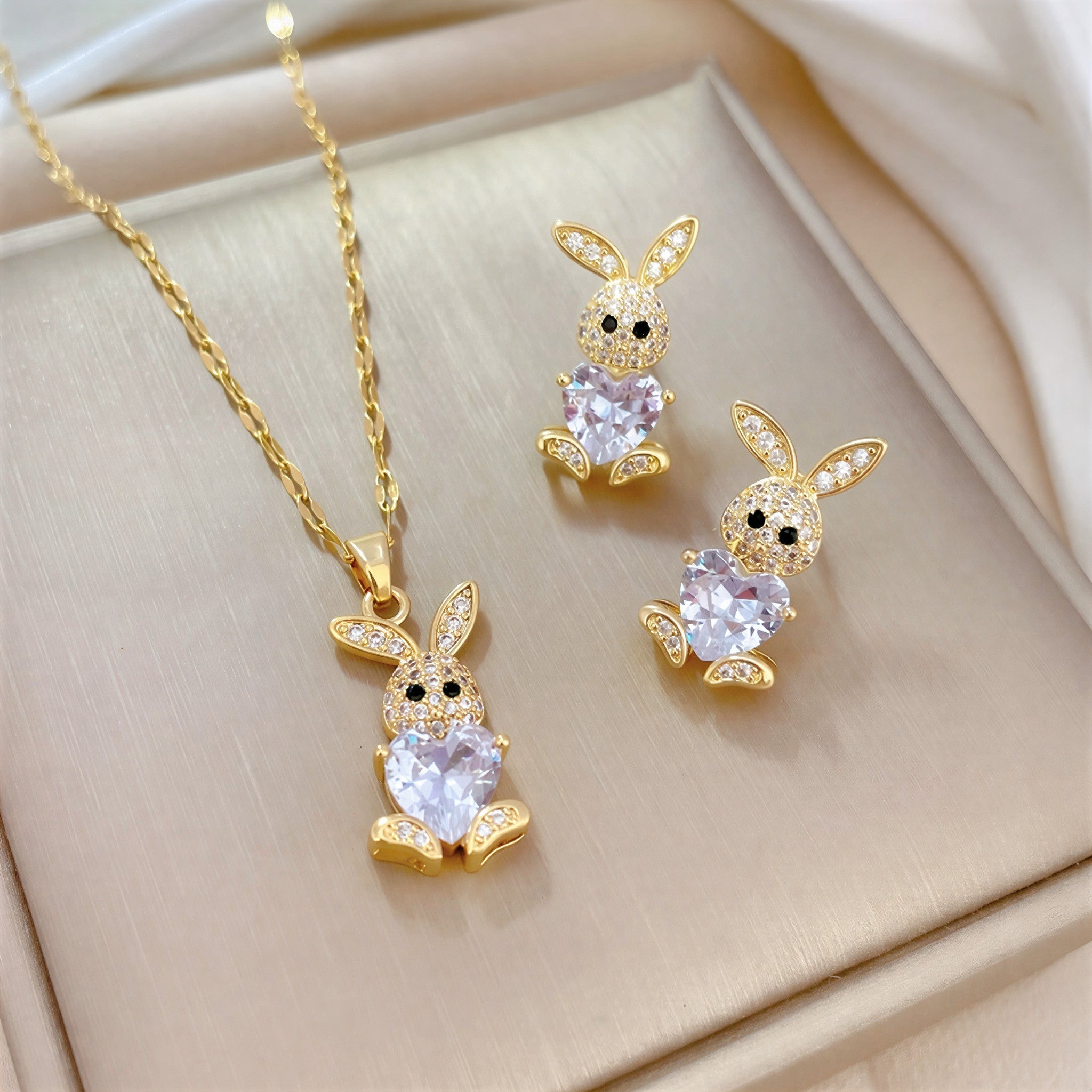 Jänisaiheiset onnenkorvakorut, mukana ilmainen kaulakoru | Rajoitettu tarjous
