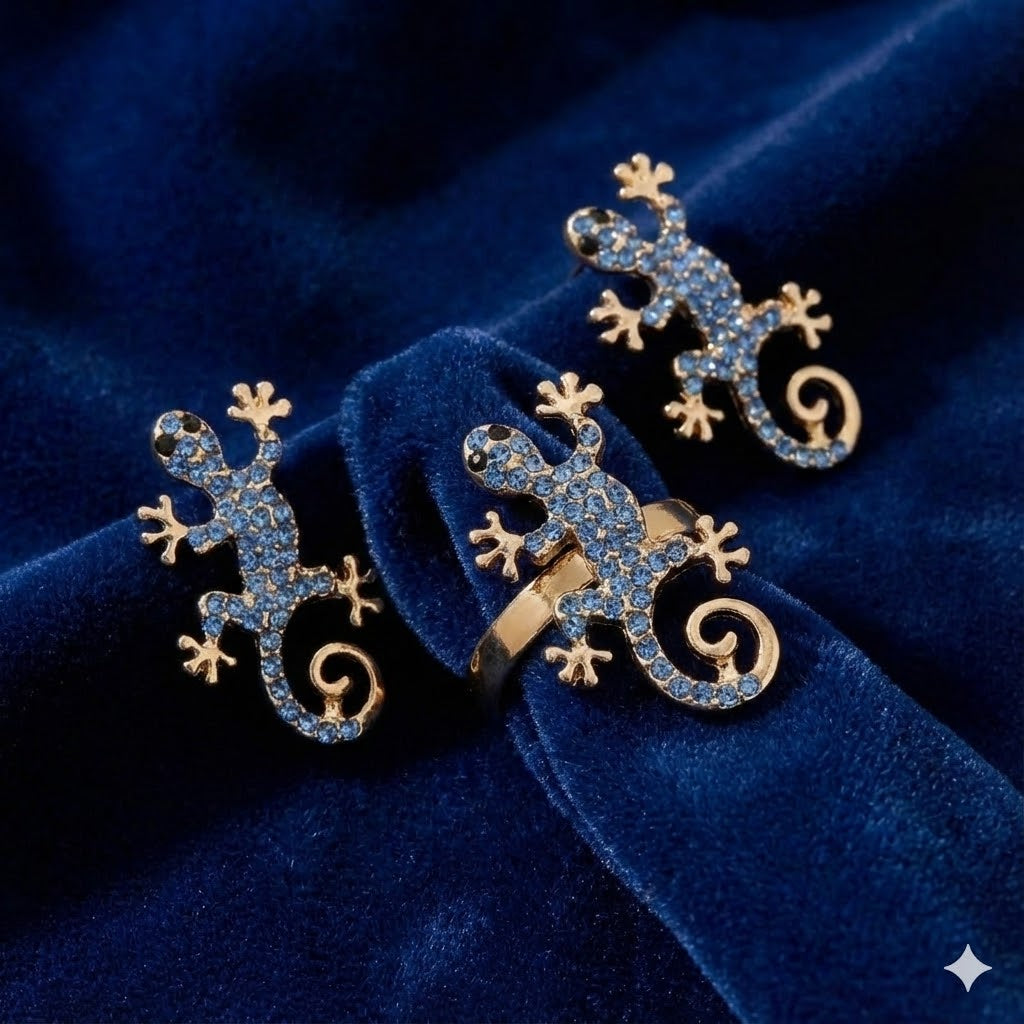 Gecko-korvakorut onnenamuletin kanssa – ilmainen sormus | Rajoitettu tarjous