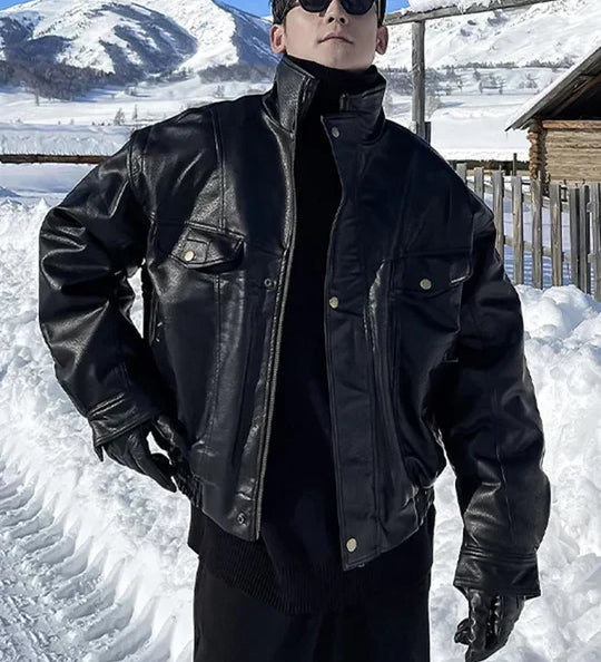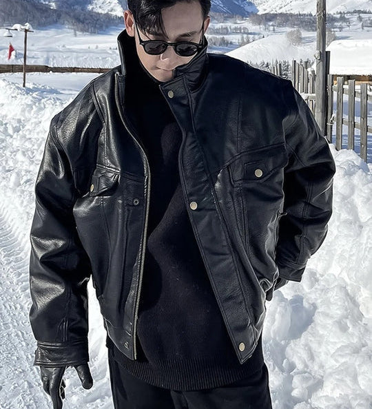 Korkealaatuinen miesten nahkatakki vetoketjulla