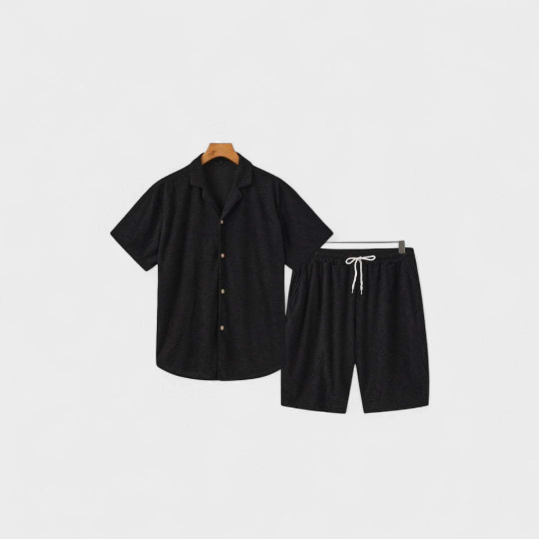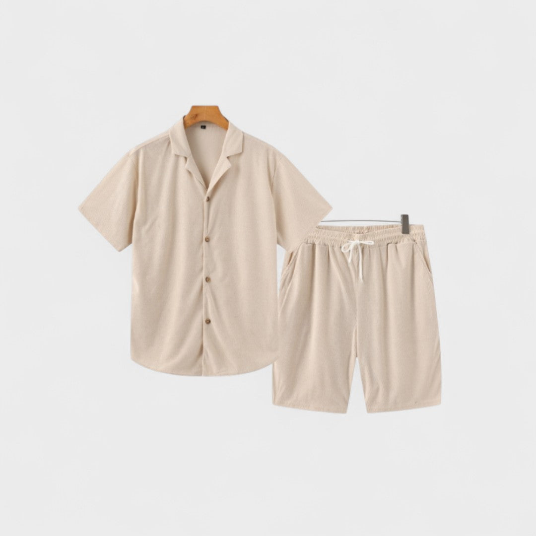 Tämä setti on valmistettu pehmeästä sametista ja uudistaa rennon pukeutumisen klassisella viehätyksellä. Rento paita sopii tyylikkäästi yhteen räätälöityjen, mutta mukavien nyörillisten shortsien kanssa, tehden setistä täydellisen valinnan huolettomaan eleganssiin. Olitpa sitten rentoutumassa kotona tai suuntaamassa ulos kevyenä kesäiltana, tämä setti yhdistelee tyyliä ja mukavuutta täydellisessä tasapainossa.