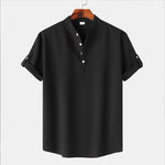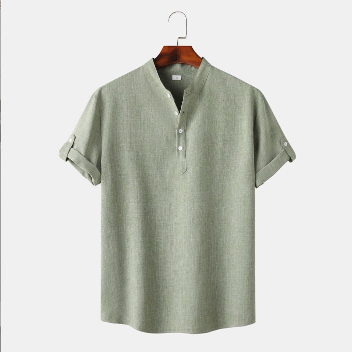 Tämä paita, jossa on puolikas nappilista ja pystykaulus, yhdistää täydellisesti rennon ilmeen ja hienostuneisuuden. Se on suunniteltu modernille miehelle, joka arvostaa sekä tyyliä että käytännöllisyyttä – kesän ehdoton luottovaate.