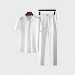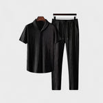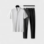 Koe täydellinen tasapaino tyylikkään ja rennon välillä puuvillaisen pikeepaidan & housujen setillämme. Setti on valmistettu 100 % premium-puuvillasta, joka takaa hengittävyyden koko päivän ajaksi sekä pehmeän tunteen ihoa vasten — ihanteellinen niin kotona rentoutumiseen kuin tyylikkääseen menoon ulkona.