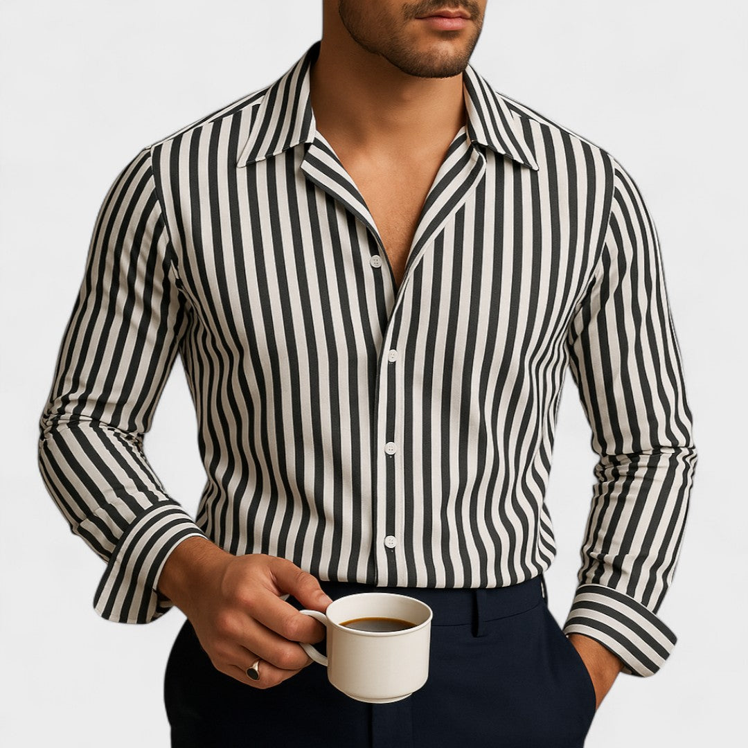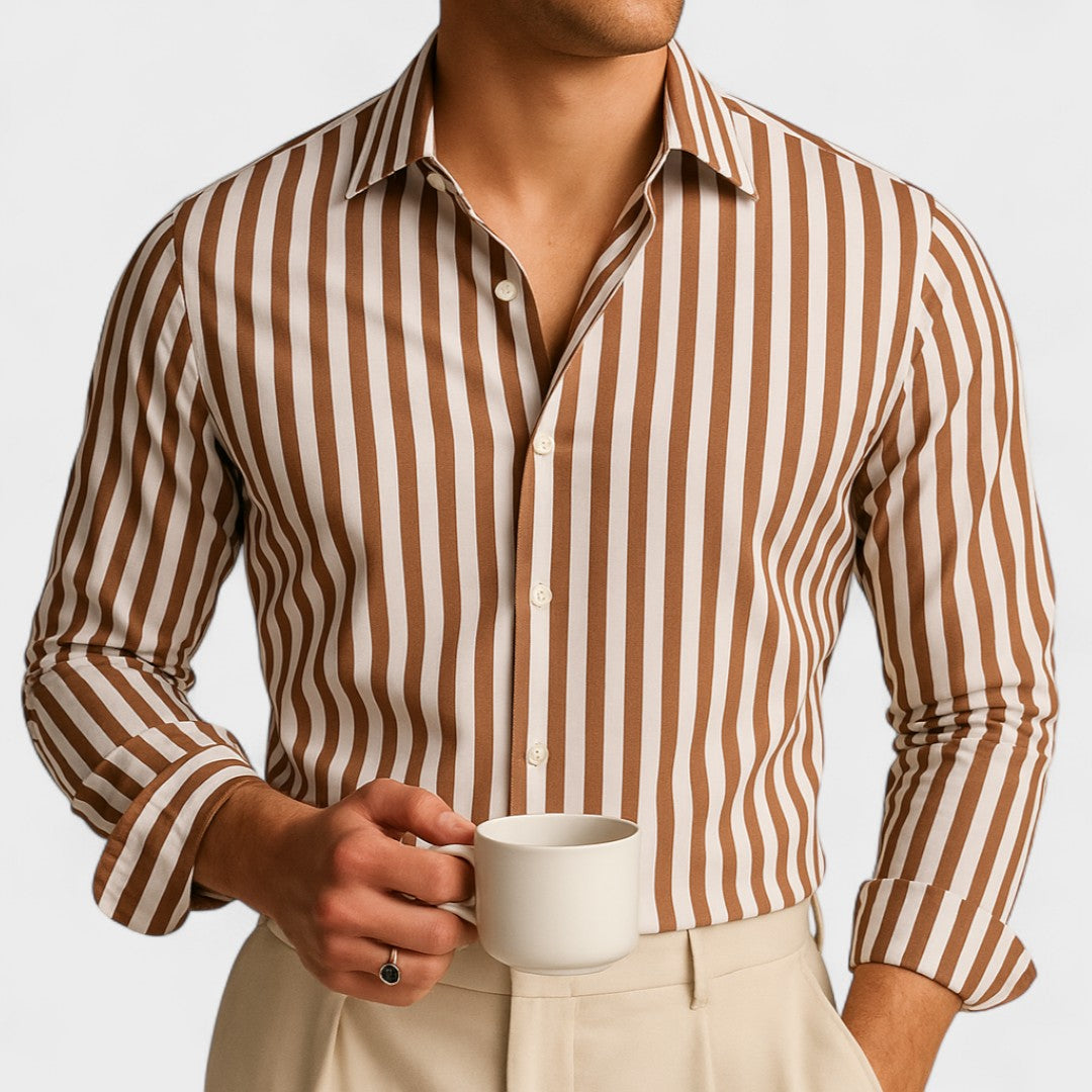 Paita Striped Dress Shirt on suunniteltu miehille, jotka arvostavat ajattomia kuvioita ja huippuluokan mukavuutta. Valmistettu laadukkaasta kankaasta, se tarjoaa raikkaan ja hengittävän istuvuuden, joka sopii vaivattomasti toimistolle sekä vapaa-ajan tilaisuuksiin.