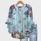 Lisää romanttista ilmettä tyyliisi tällä vaaleansinisellä puserolla, jota koristavat hurmaavat kukkakuosit vaaleanpunaisen, sinisen ja valkoisen sävyissä. Röyhelöhihat tuovat eleganssia ja naisellisuutta, ja rento leikkaus tekee tästä puserosta ihanteellisen valinnan jokaiseen tilaisuuteen.