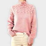 Damen palmikkoneulepusero yhdistää ajattoman eleganssin ja maksimaalisen mukavuuden. Sen rakenteellinen palmikkoneulekuvio tekee siitä todellisen katseenvangitsijan – täydellinen arkeen, toimistolle tai rentoihin hetkiin. Mukava korkea kaulus ja pitkät hihat takaavat ihanasti lämpöä, kun taas väljä istuvuus antaa miellyttävää liikkumavapautta.
