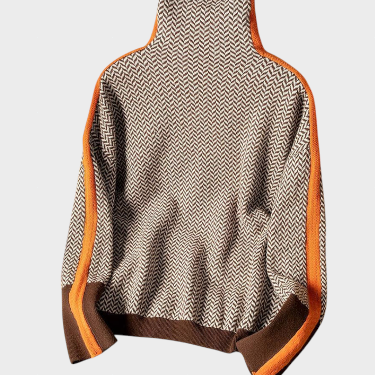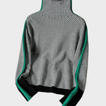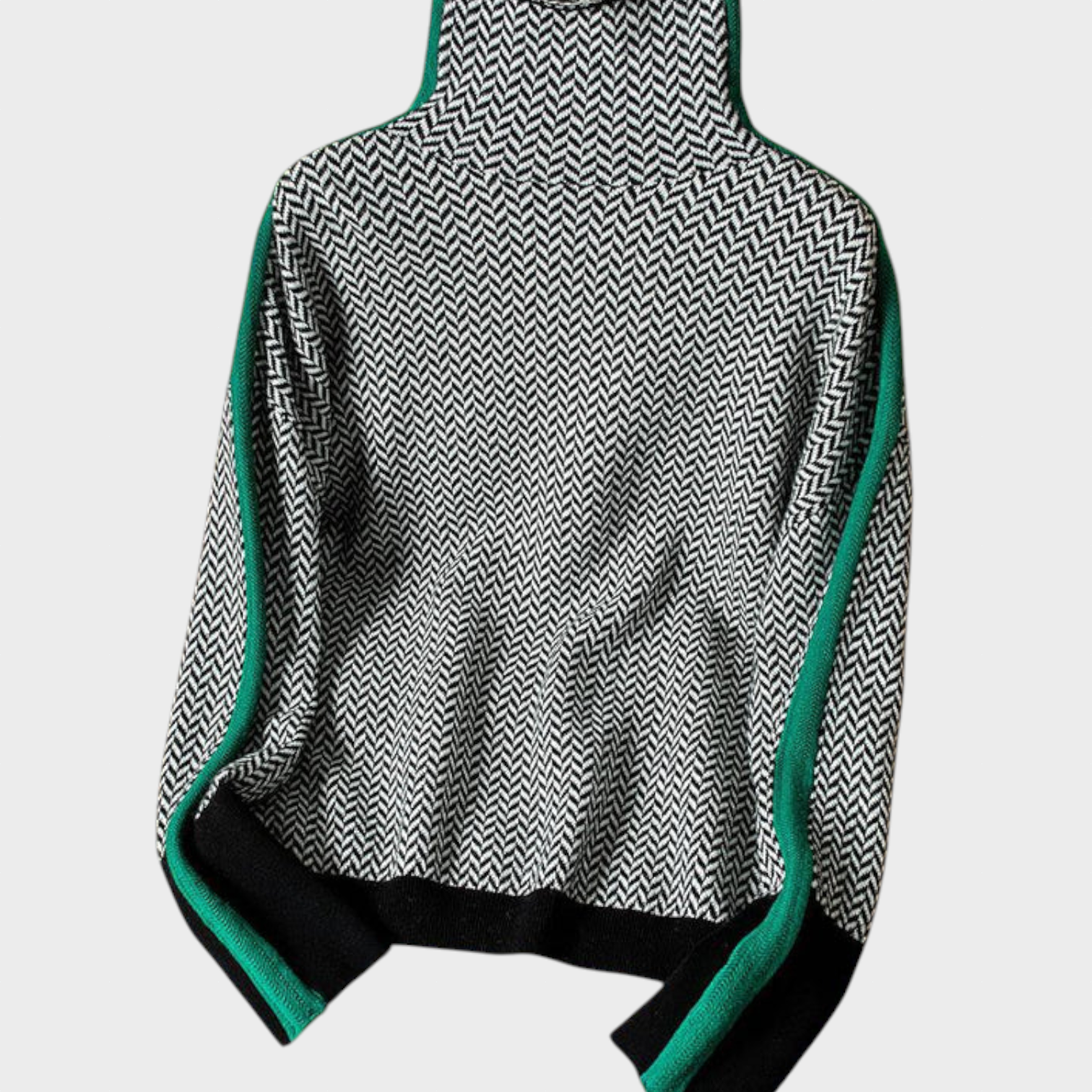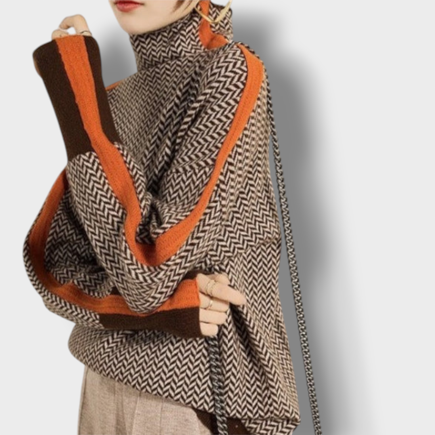 Kuvittele… syysaamu Pariisissa, raikas ilma, lämmin kahvi kädessä. Vedät päällesi neuletakin, tunnet lohdullisen pehmeyden neuloksessa ja sen luonnollisen eleganssin korkeassa kauluksessa. Kontrastiraidat eivät ole vain yksityiskohta: ne muotoilevat vartaloasi ja kiinnittävät katseen hillitysti ja tyylikkäästi.